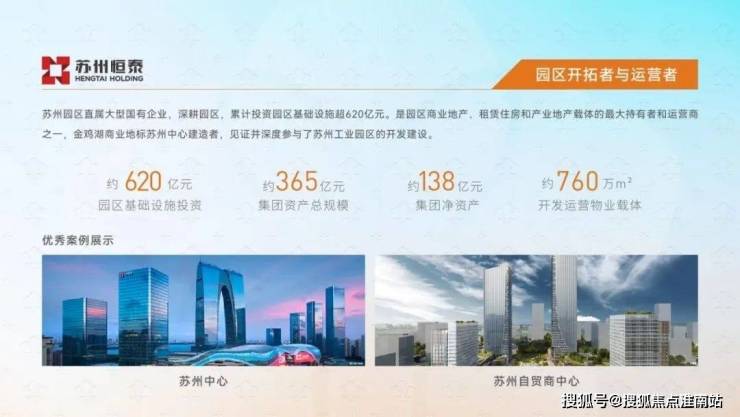 【品牌·青澄】再耀苏州的新核苏州恒泰|园区开拓者与运营者中新合作苏州工业园区直属的大型国有企业,累计开发各类物业载体约760万平方米,拥有苏州中心、苏州自贸商务中心等代表项目,目前已成为园区商业地产、产业地产、租赁住房领域重要的载体持有者和运营商。