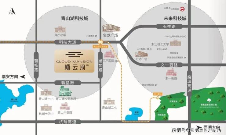 地铁16号线:直距约300m即「青山湖科技城站」,2站接轨未来科技城2.0—南湖科学中心,6站即达绿汀路TOD;绿汀路站换乘地铁3号线、5号线,直达杭州西站,畅享武林、新天地、钱江新城等商圈。