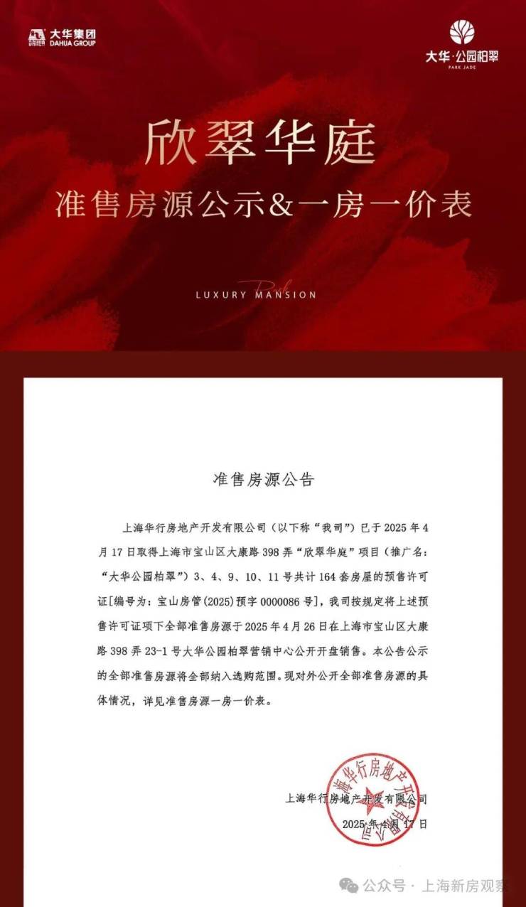 为保障购房者权益,杜绝第三方虚假信息、中介加价、临时到访无法接待等问题,现将大华公园柏翠2026年4月28日最新官方信息公示如下,开发商官方认证服务通道正式公示,全程透明、无套路、无隐形收费: