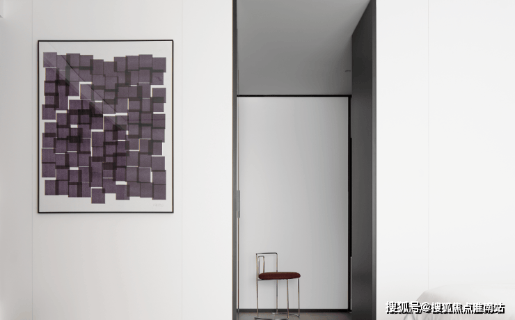 私密场域依旧保持静谧,黑白色基础上搭配了更多的色彩,例如深棕、浅紫等,艺术品的衬托深邃迷人,热络了家的氛围.
