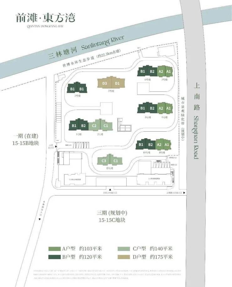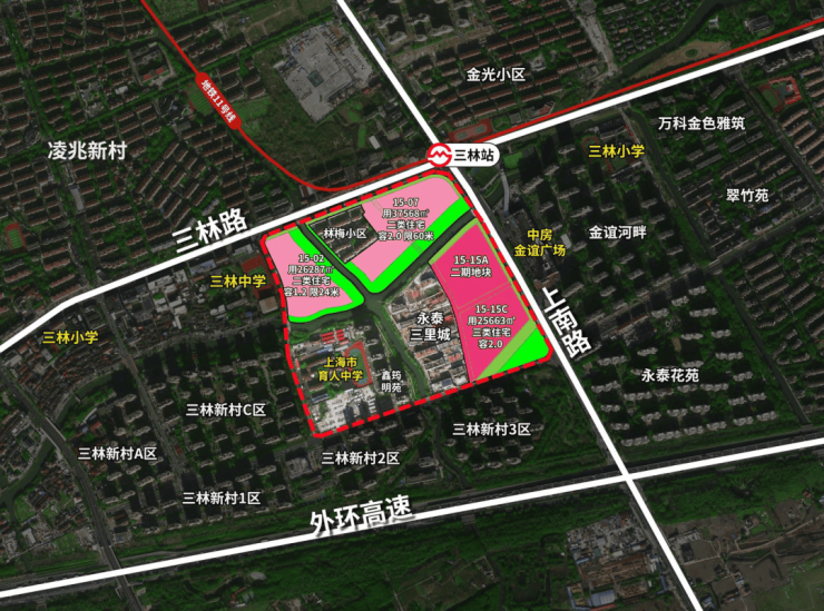项目所处的位置是超30万方河滨大城,将打造成三林的新地标。二期地块位于一期东侧,即15-15A地块。