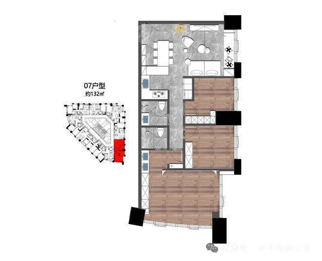 132㎡,西北、东南朝向,3房性价比之王,边套设计户型方正主卧双面大落地270度全景采光