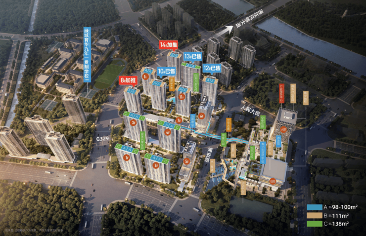 在售户型面积:98㎡3房、100㎡3房、111㎡3房、138㎡4房