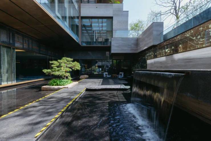 更罕见的是, 项目打造了大体量的下沉式会所 。其配备了泳池、私宴厅等丰富的功能区,而且黑松与山石点缀其间,既显东方雅韵,又满足现代社交需求。