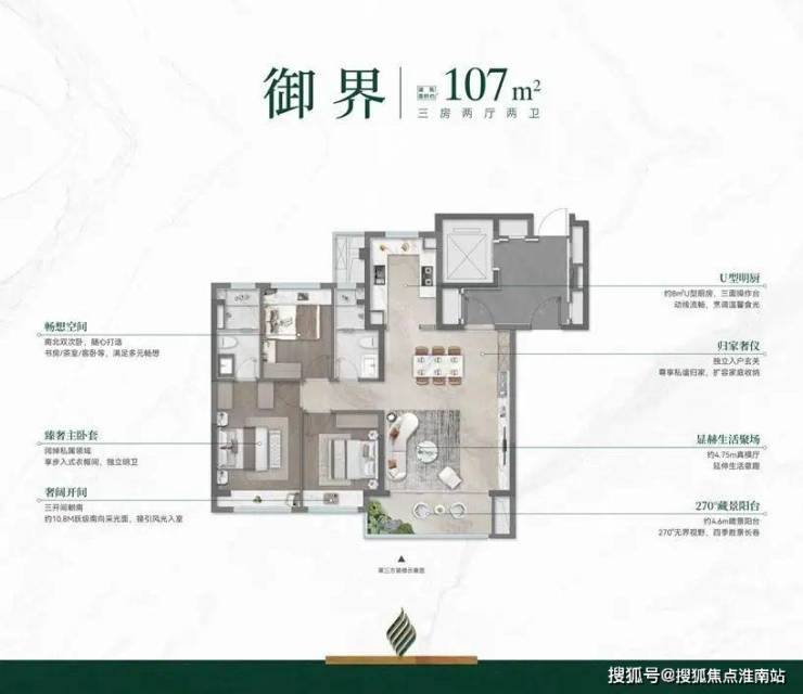约107㎡精装交付大三房,小户型住出“大平层”的体验, 4.75米的真横厅,满足客厅的功能上,还能附加工作台、健身区、阅读角等个性化需求,轻松实现一厅多用;较去年观萃更是升级了独立餐厅,更具仪式感的用餐体验, 真正兼顾功能及改善的“完美三房”。