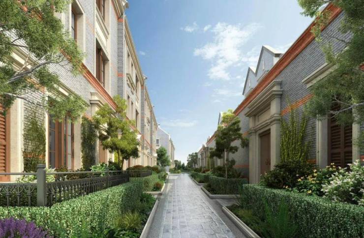 项目拥有约1.1的超低建筑容积率,社区狮子景观轴线串联海派生活的原味;提取经典洋房的场景植入社区景观打造,将丁香、紫藤,蔷薇,紫薇……等八种主题花卉,传香入园,串联巷弄8个花园,组成U型景观带,围合一座弘安大花园,叠影海派繁花巷弄里。