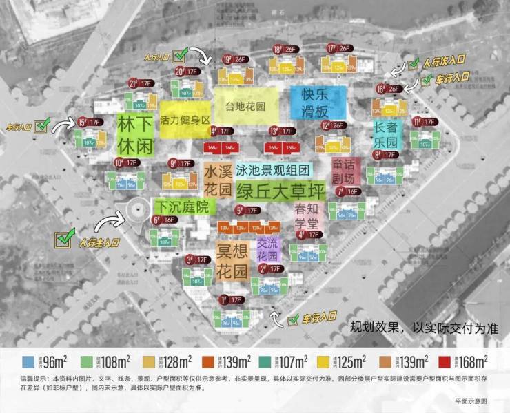 4⃣、户型及产品力。[建筑面积约96-168方,小区共8个户型面积段,充分满足各年龄段不同人群需求]
