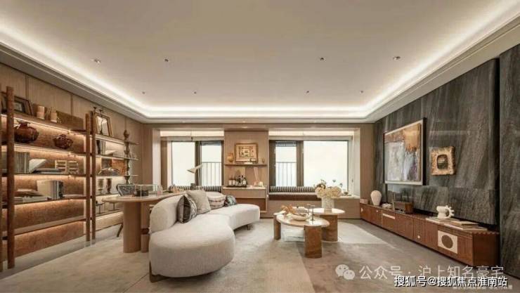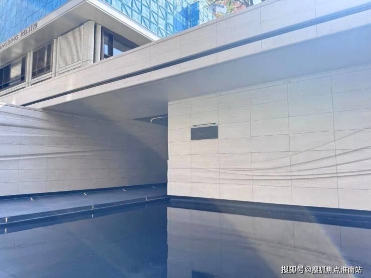 稍微走近一点, 就能看到采用了大量的弧形元素和石材材料! 石材的质感本身就厚重,在上面叠加类似海浪的线条弱化了厚重感,反而显得轻盈!