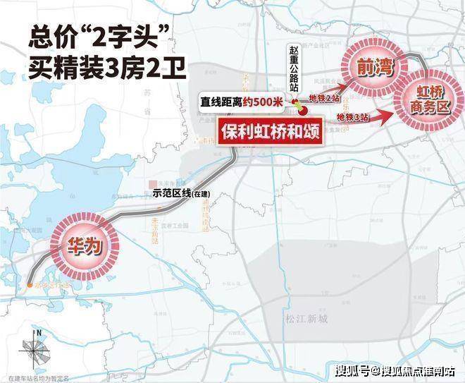 保利虹桥和颂第一大特征是轨交房,直线距离示范区线(在建)仅约500米,是板块内少有可轻松至轨交站点的新房.