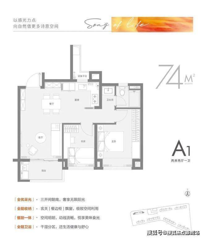 建面约74㎡2房,总价预计231万起: