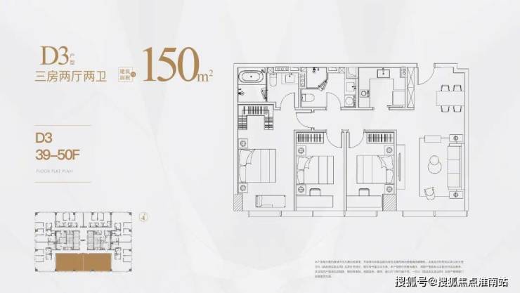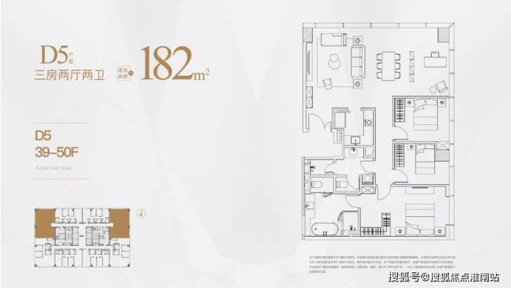 高区为39-50层,户型分别是125㎡,150㎡,180㎡。