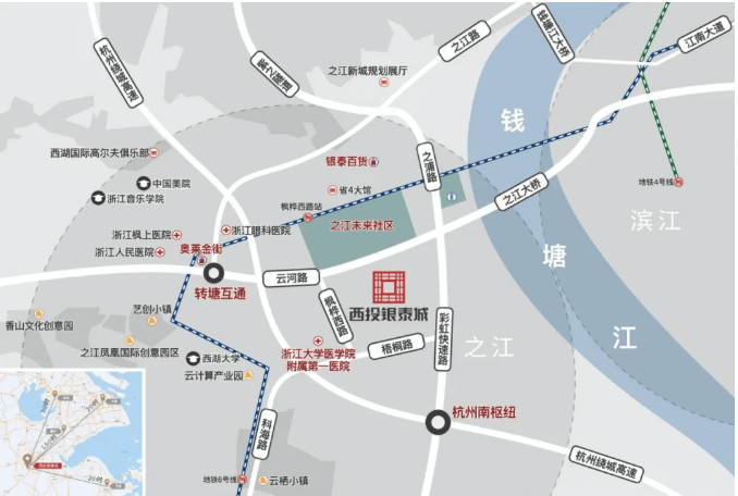 周边有浙大一院之江院区、浙江音乐学院、中国美院等优质医疗、教育资源,形成15分钟生活圈。