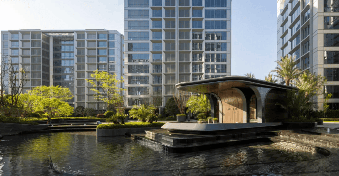 由贝尔高林、邱德光等国际设计团队联袂打造,采用玻璃幕墙美学、围合式园林设计,约70%窗墙比,南向面宽达24米,实现与自然无距的空间边界。