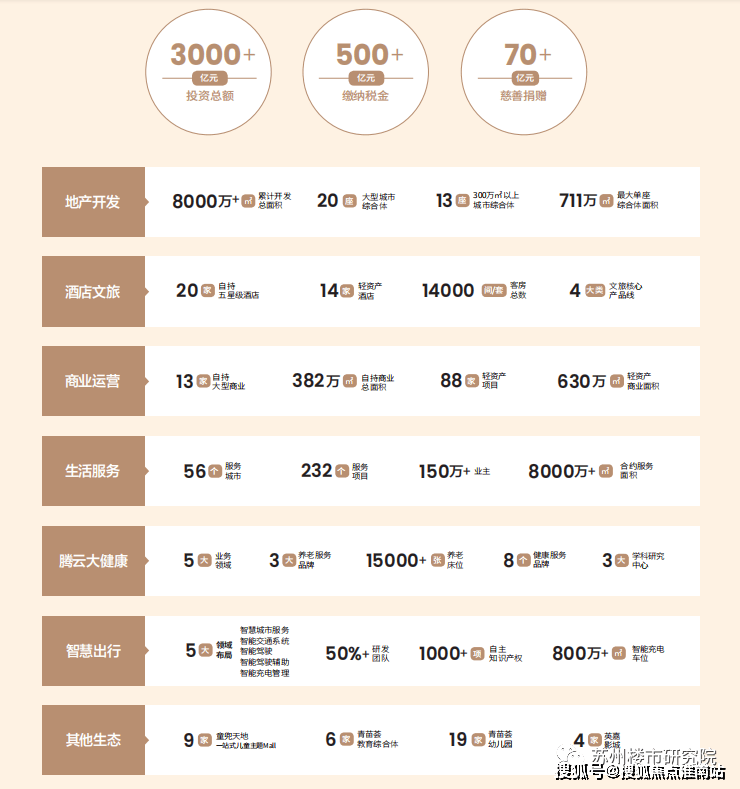 以“平台+投资”为战略驱动,拥有地产开发、酒店文旅、商业运营、生活服务、大健康、智慧出行等支柱产业,并在儿童、教育、金融服务、AI科技等领域投资布局,形成“大消费、大文旅、大健康、新科技”四大主航道业务,构建起幸福产业生态圈。