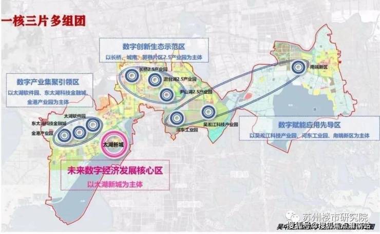 吴中太湖新城,依托“先配套、再住宅,先地下、再地上”的规划理念,十年间迅速成城。以“世界级创新湖区”为愿景,确立“科创圈带重要节点、数字经济发展核心承载区、城市高端功能区、城市新中心”的定位,以数字赋能,科创先导,促进产城融合。