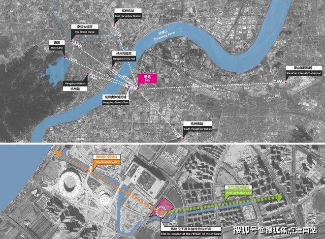 海威·安铂中心与杭州国际地标“北斗七星”连接在同一条核心中轴上,毗邻江南科技城和高新技术产业滨江区,北临杭州市政府,南接萧山经济开发区,距离东边的萧山国际机场仅 21 公里,这个地理位置的独特性使其成为杭州市的城市新核心。
