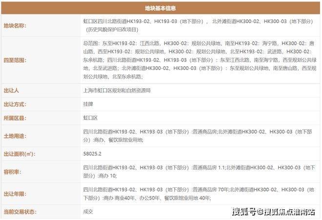 2021年2月,上海虹口城市更新建设发展有限公司(上海地产联合体)以111.35亿拿下了虹口区四川北路街道HK193-02(17街坊弘安里)、HK193-03(地下部分);北外滩街道HK300-02、HK300-03(地下部分)(历史风貌保护旧改项目)