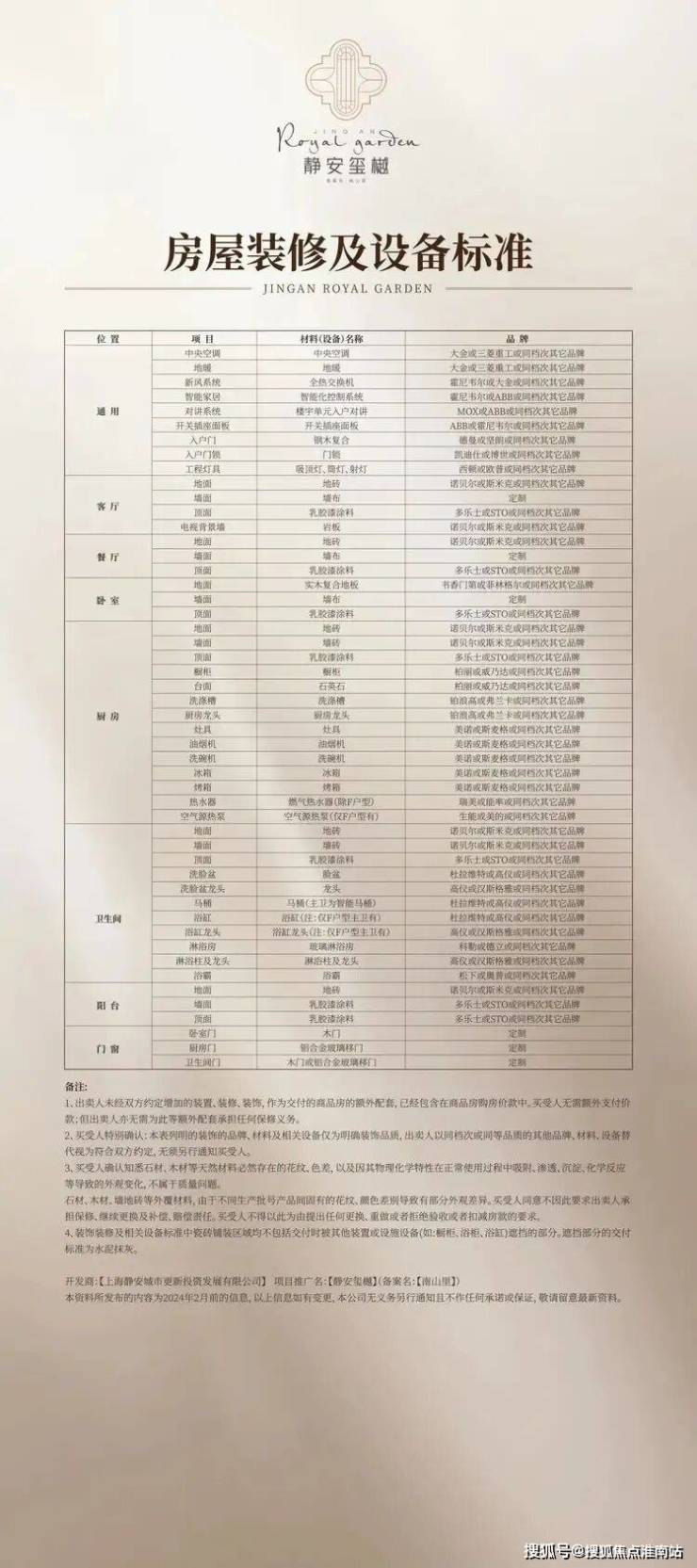 装标上,采用成本极高的德系品牌为主,比如空调、地暖,大金或三菱重工同档次其他品牌、主卫马桶、淋浴,杜拉维特或高仪同档次品牌、龙头及淋浴,整体厨电配置(灶具、油烟机、烤箱、洗碗机、冰箱),美诺或斯麦格或同档次其它品牌;项目每一处装标,交付标准基本都是该领域的佼佼者品牌.