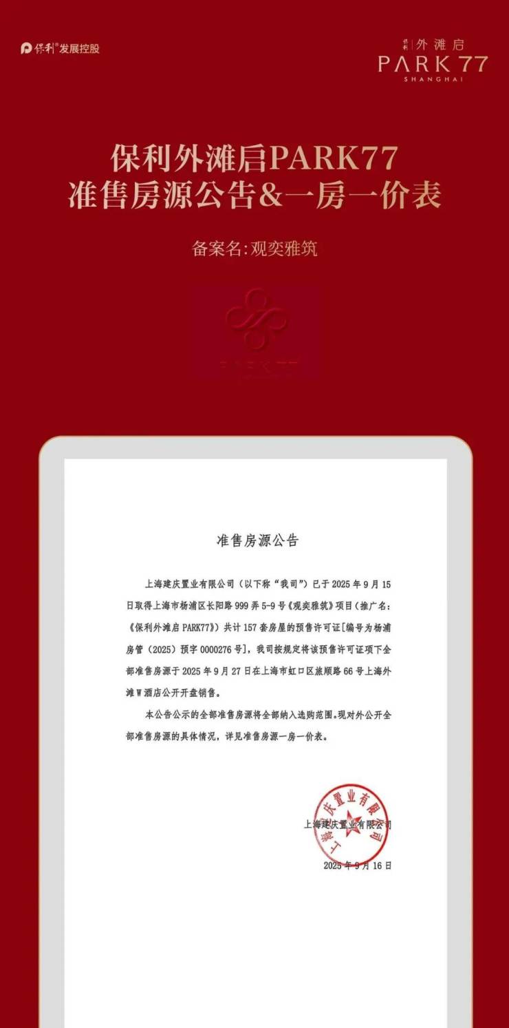 为保障购房者权益,规避非官方渠道误导,现将保利外滩启park772026年4月3日最新官方信息公示如下,敬请认准: