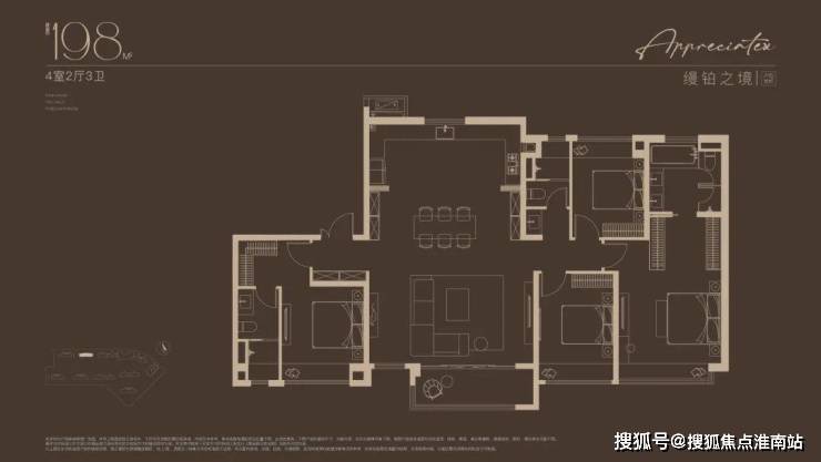 建面约198㎡4房户型,嘉定“收藏级”传世大宅!塔尖人士的挚爱之选!2梯2户的设计,子母双开门礼序入户,私密尊崇门厅,彰显尊崇生活仪式感。