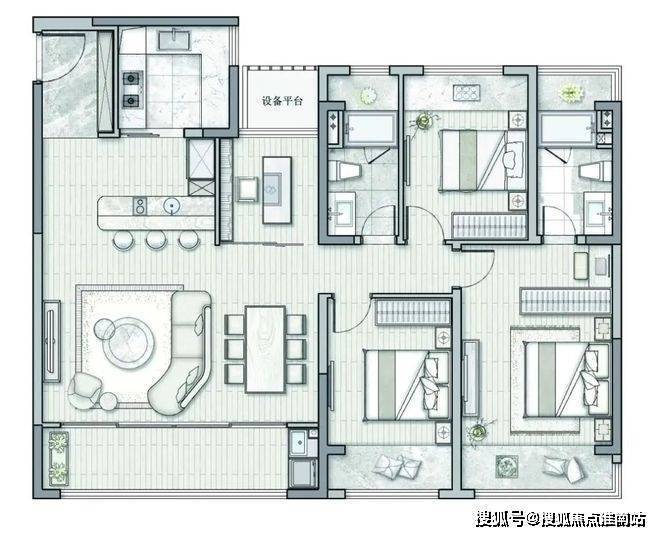 2.三房两厅两卫,动静分区,互不干扰