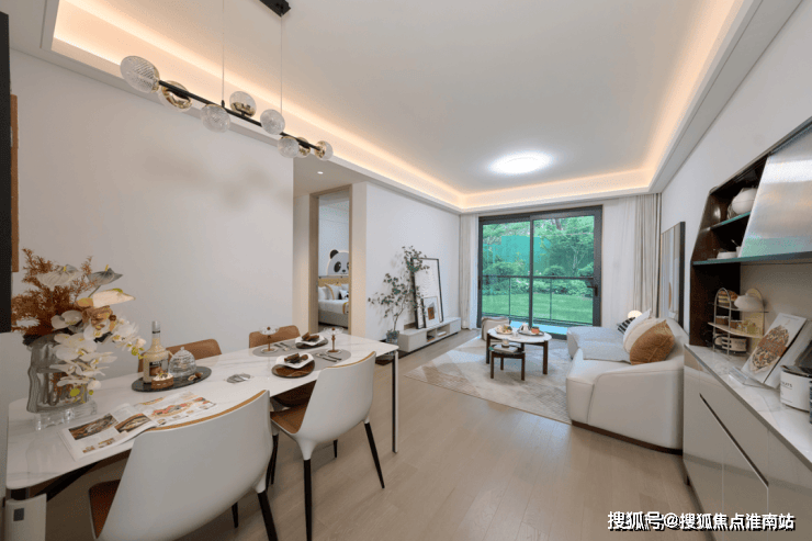 3.5开间的南向户型,除了主次卧朝南,更进一步将客厅的开间加宽,成为一个横厅。横向宽厅的好处是可以有更多的南向采光,阳光更充足。此外,客厅可以弹性软分隔的方式,分出一个开放式书桌的空间,适配更长的家庭周期。