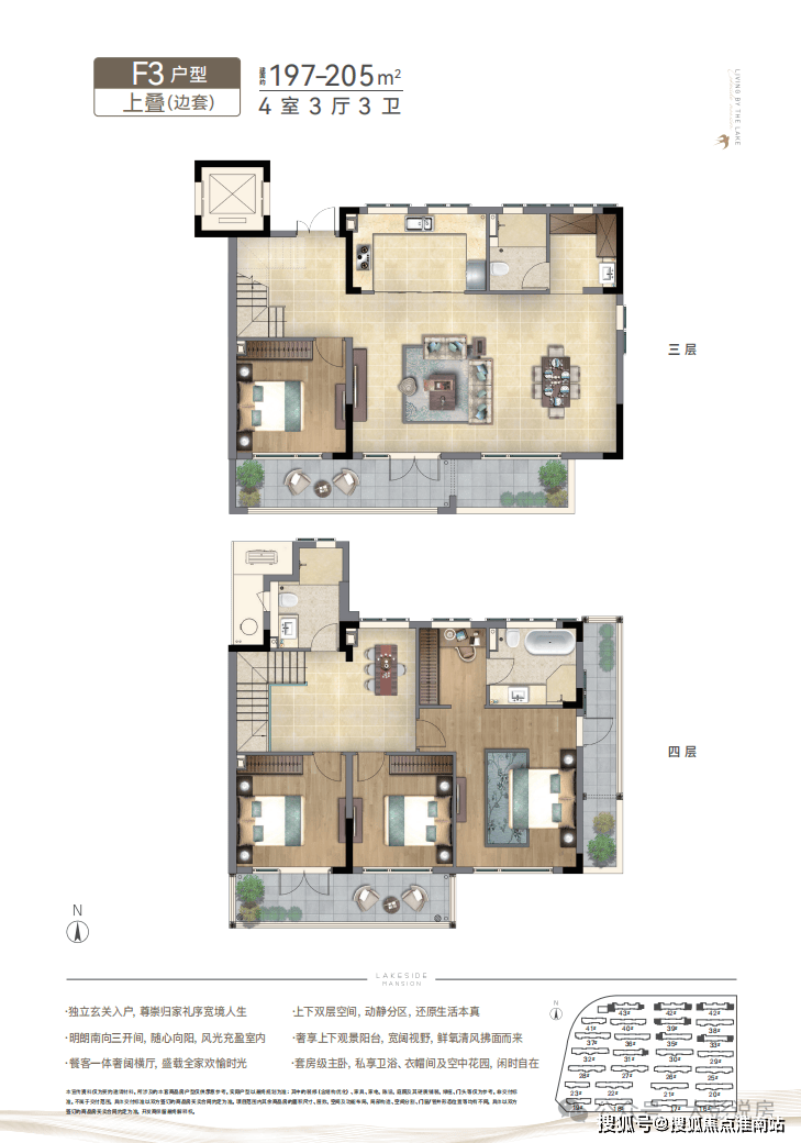 将新亚洲元素植入现代建筑语系,坡屋顶、深挑檐中式元素,采用大面蓝灰色LOW-E玻璃,大面宽、大开间、全明通透的湖景洋房,以“中央空调+新风系统+地暖”全系精装交付,诠释洋房生活的格调。