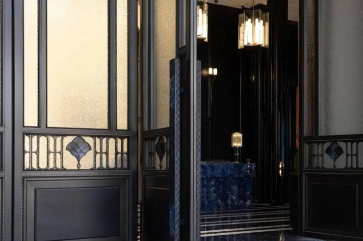 细节之处,光是一个接待台,就采用了产自玻利维亚约4500米海拔的高原矿脉——玻利维亚蓝石材,是世界上储存量最少的石材之一,非常珍贵;而大堂的柱子,也是巴西乌金奢石;
