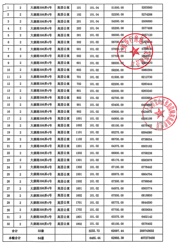 一房一价表公示