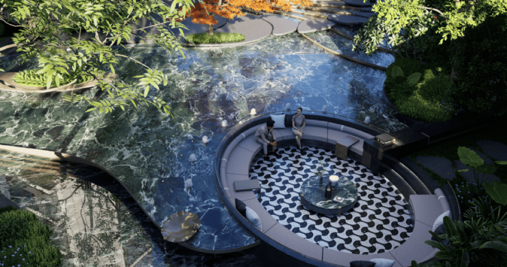 项目社区秉承“内外双公园、城市公园一体化”理念,打造出“一轴、一带、一环、九大花园空间”的生态品质社区。