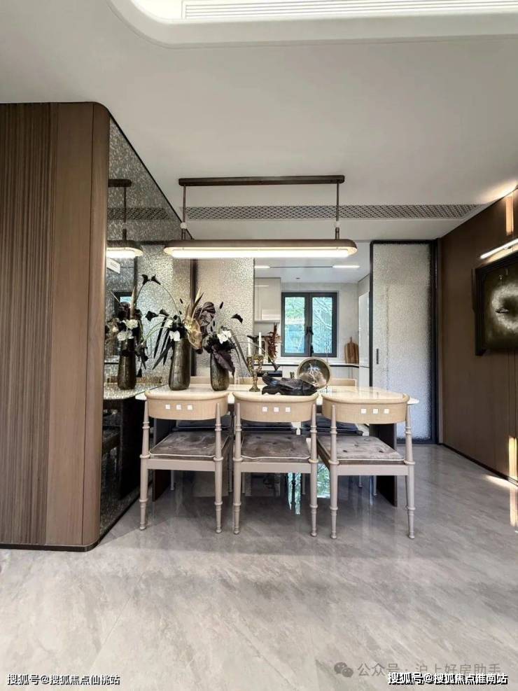 归家门厅设计为弧形顶棚,非对称构图,圆润的形式提供给业主放松的情绪价值。可以说是处处体现人居的松弛感和舒适度。