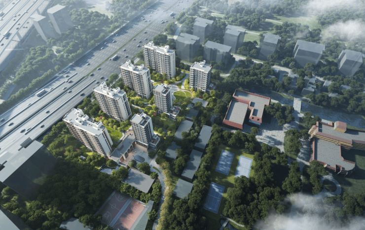极简坡屋顶:摒弃繁复装饰,以现代几何线条演绎经典坡屋顶,既延续西郊文脉记忆,又降低建筑风荷载,实现美学与功能的统一;