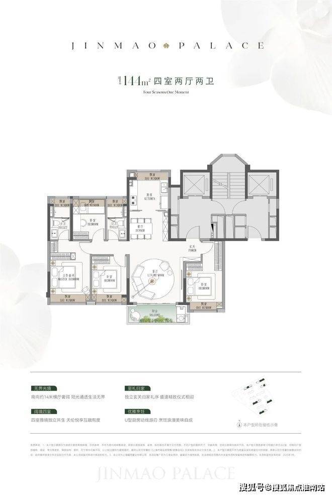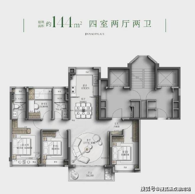 建面约144㎡4房: