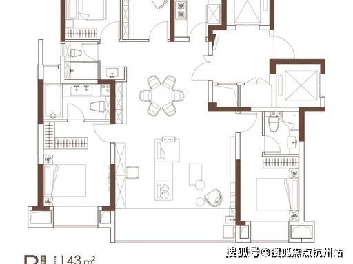3. 143㎡ 四室两厅三卫(宽境横厅)