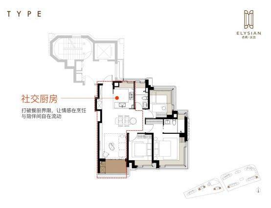 2.social厨房设计,开放式厨房水槽区转向餐厅一侧,杜绝消极空间让室内轻松连贯,也让情感交流、家庭互动在无界限。