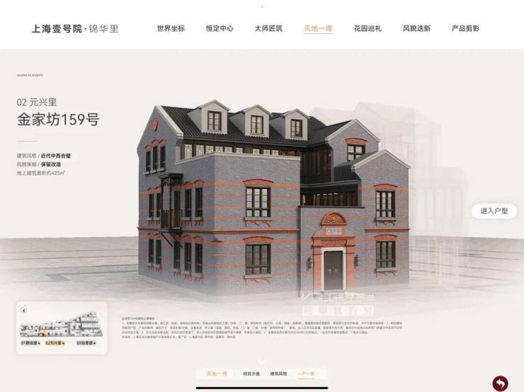秉承以“最大化保留风貌肌理”为原则,在历史底纹之上打造新天地和风貌区里的当代上海故里。 通过保护修缮、保留改造、更新改建三大更新手法,萃取打造「江南园邸」「近代中西合璧」「近代装饰艺术」「现代主义」四大建筑风格,深度挖掘建筑基因,以专属建筑立面及设计语言,量身定制呈现 “一户一策” 的合院式居住体验。