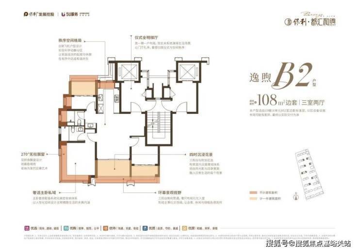 小高层类一梯一户、三阳台设计(部分户型) 、270°无柱飘窗(部分)