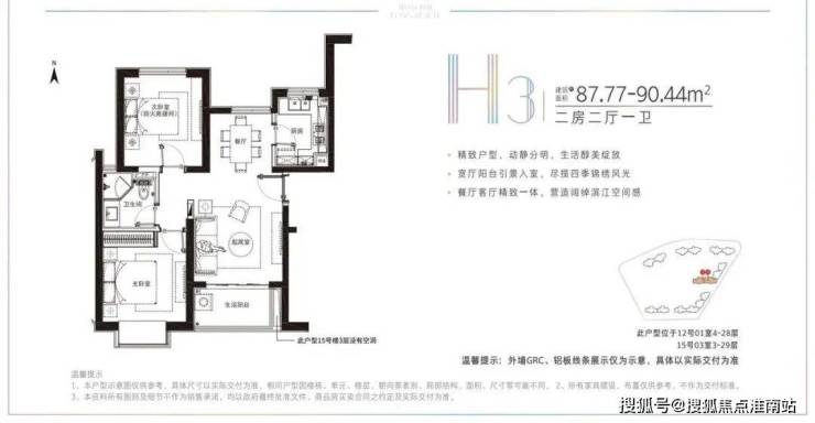 建面约78-91.22平米的小户型,两房两厅一卫的格局,非常适合年轻刚需家庭上车。