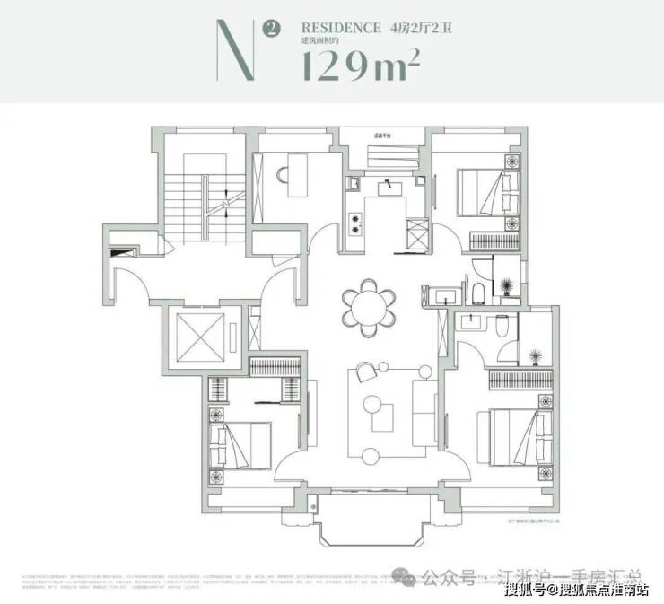 建面约129㎡经典四叶草户型,房间相对独立,互不打扰,且自带飘窗,次卧尺度感追赶主卧,整体空间带来140㎡的实得体验。