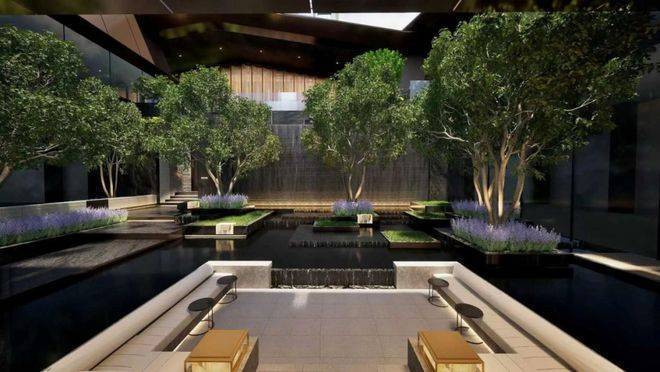 项目对标沧浪亭的整体设计,引入六大苏园核心场景,打造“三轴六境六园七会所”,通过“池岛-静潭-山石-水榭-草林-竹嬉”六种水岸度假生活美学,重塑当代游园体验,并且通过下沉会所、以及架空层设计,引入水景、绿植与灰空间,营造一种仿若置身一座“大园子”的体感,在建筑排布的设计主动减容,最终达成了19.8%的容积率,也就是在五分之一土地上造房,实现“低密”基因的强化,以及人均均好的景观实现。