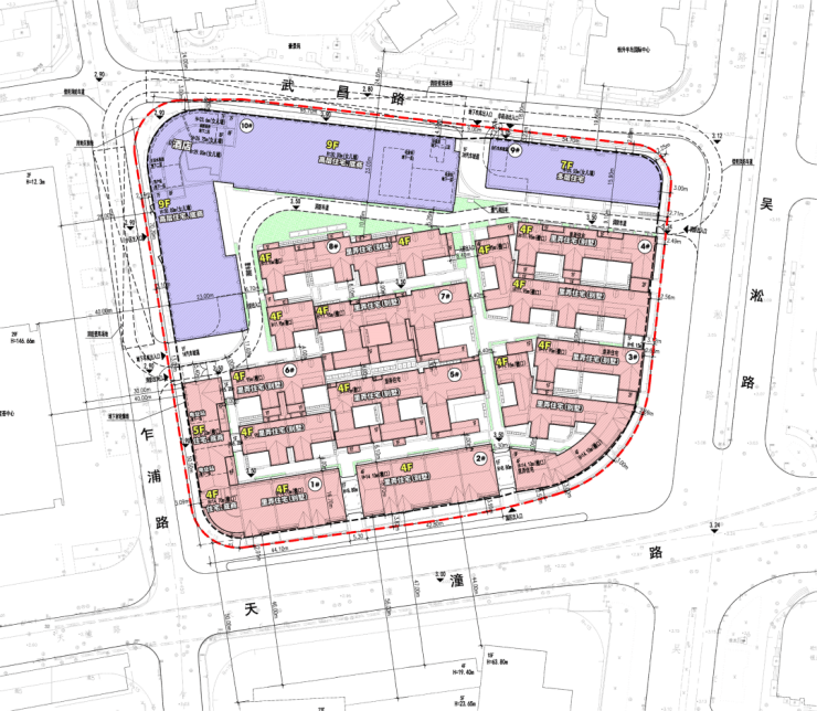 项目涵盖风貌高层住宅、风貌多层住宅和风貌里弄住宅3种产品,规划有8幢4层里弄住宅,1幢7层洋房,1幢9层小高层,还有底商和酒店。