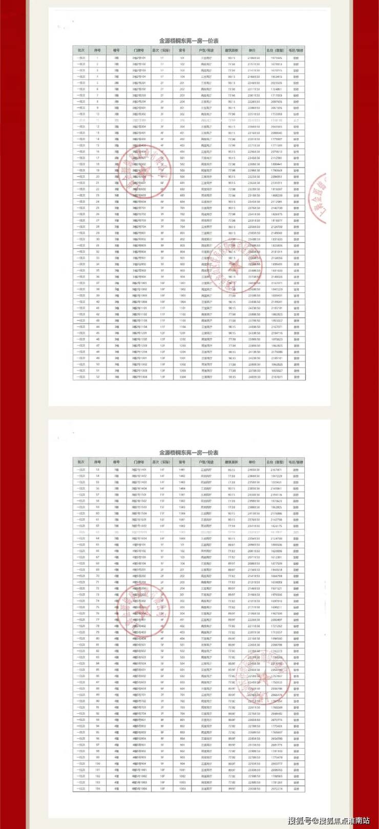 项目一房一价表