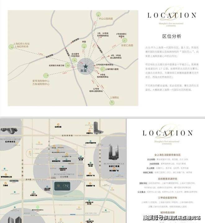 距离漕河泾开发区1.7公里,漕河泾有近150家世界五百强企业入驻;距离长宁徐家汇3公里左右,有高端的生活配套;距离虹桥交通枢纽6.5公里左右,出差便利。产业、交通、配套齐聚,且周边就是古北壹号、古北臻园,圈层纯粹。