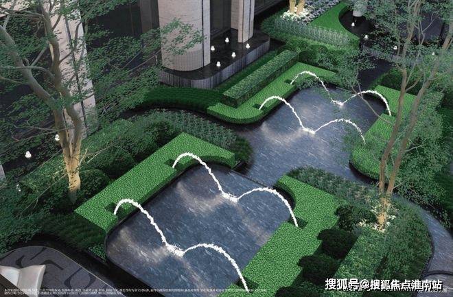 中央休闲庭院空间,一场浸润灵感的艺术水景,自然与潺水和鸣间,海上·清和玺售楼处电话4009966224分享生活的乐趣与奇妙.