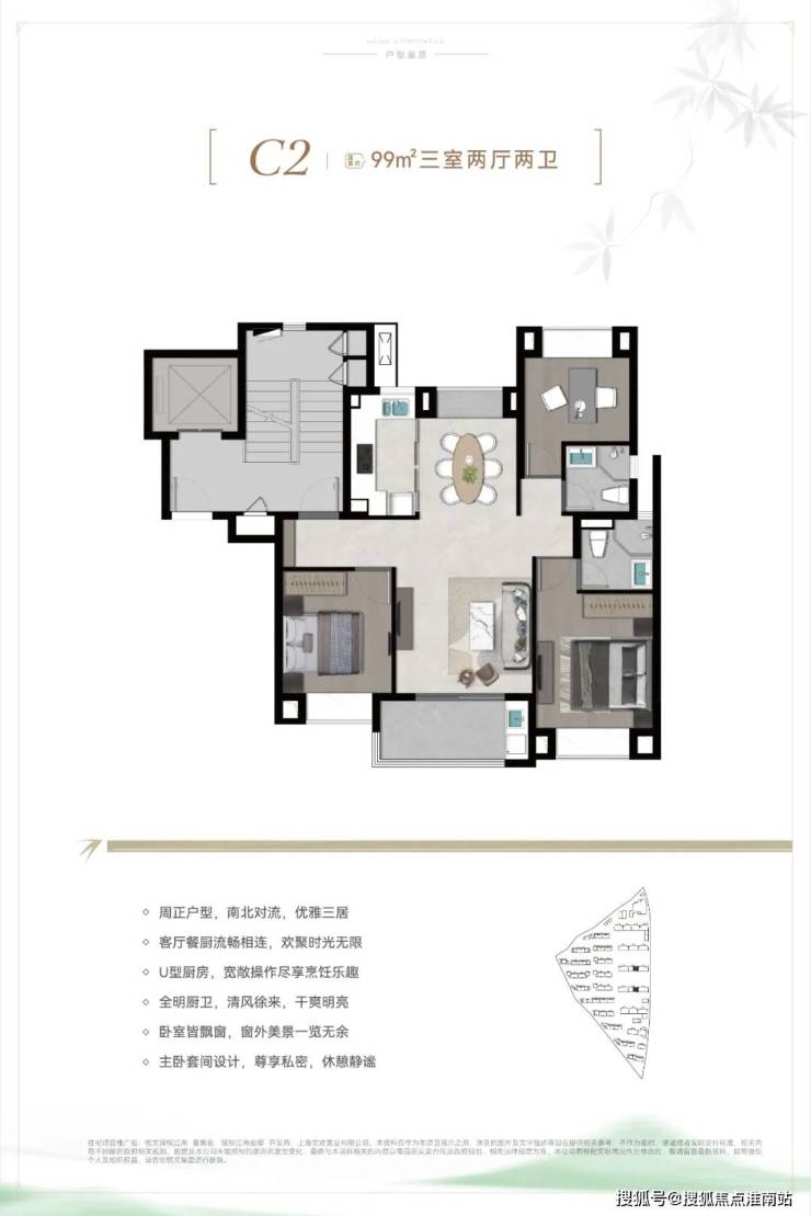 户型三开间朝南、室内“3个飘窗+1阳台”、再加上“2卫”的设计,不管是采光、视野、通风、私密性,还是实用性都十分出色。