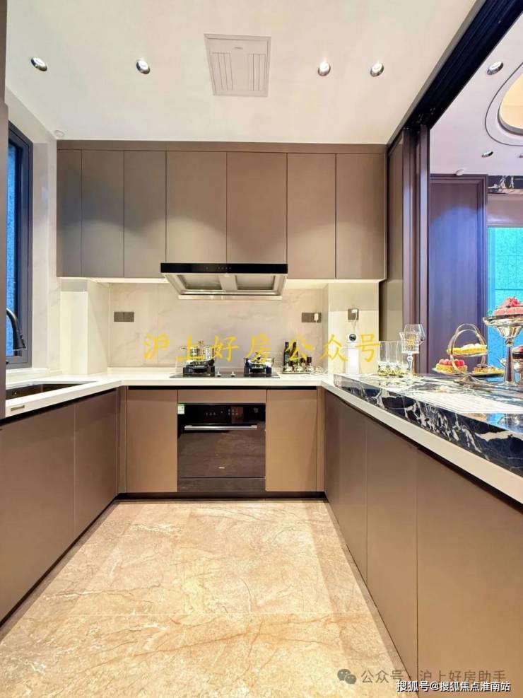 U型厨房,在这个面积段颇为难得,操作台面富裕;全玻璃移门设计,通透明亮。
