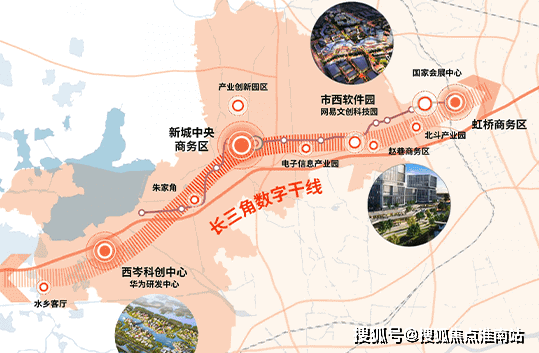 比如产业,其他新城多以传统工业+新兴产业为支柱,而青浦新城独树一帜,大力发展数字经济, 承接虹桥商务区、西岑科创中心、市西软件信息园的创新辐射及产业链延伸,打造“长三角数字干线”,形成科技中心,产业发展势能极其庞大。