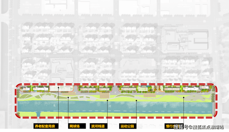 景观面:依托毛河泾及滨水公园,在达恒路打造慢行景观系统,建设生态健康人居社区, 国际化的生态居住方式,慢享生活,城市绿洲营造。