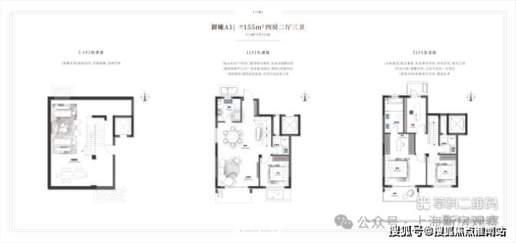 上叠:实现2+1房2卫设计,长辈房位于三层、配卫生间,规避上下楼梯的麻烦。南向阳台与餐客厅一线贯通,享受充沛阳光。四层豪华主卧、北侧连接露台,空中露台及顶层阳光平台,可量身定制成一方幸福天地。