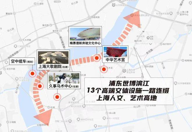 世博-后滩浓缩了全上海规格最高的文体配套,梅赛德斯奔驰文化中心、中华艺术宫、上海大歌剧院、世博展览馆、久事国际马术中心等都在这里,形成一条上海独具一格的文化艺术带。